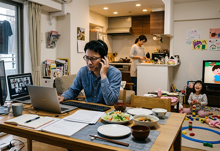さらに、ダイニングテーブルを仕事用デスクとして使用している場合、食事のたびに書類やパソコンを片付ける必要があり、作業効率が大幅に低下します。このような環境では、創造性を要する企画業務や集中を要する分析作業に支障をきたすのは避けられません。